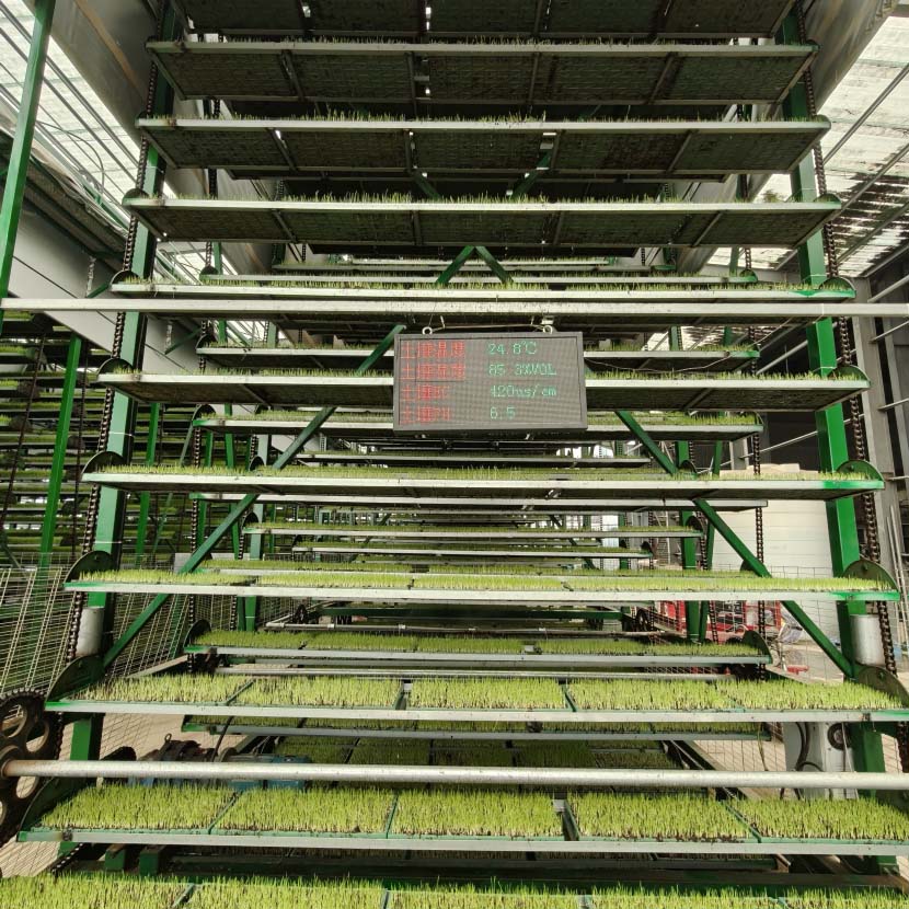 这套设备藏着不少“黑科技”:育苗盘上架后,架体反光膜实现暗化催芽,促进秧苗整齐出苗;催芽后,设备实时监控棚内温光湿等参数并自动调节,育出的秧苗根旺苗壮,更能适应当地盐碱地环境。